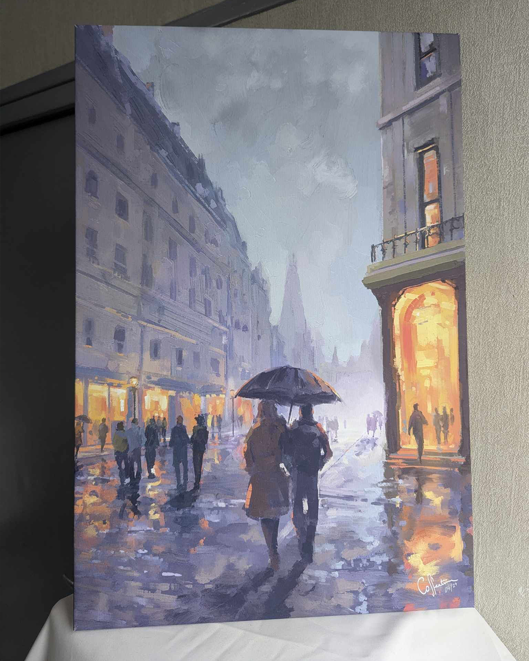À vrai dire je fais de l’impressionnisme numérique, pourquoi ne pas proposer à la finalité des illustrations imprimées sur toile, optimisant les textures données à mes dessins.