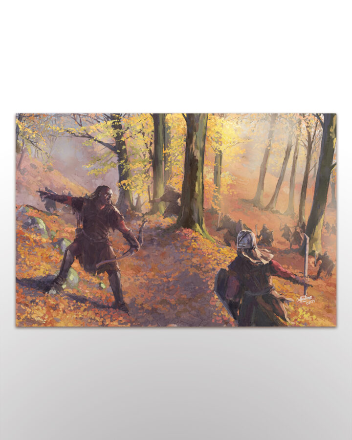 Encore une fois j’arpente le monde de Tolkien, je voulais dans cette illustration montrer un paysage doux , qui contraste avec la nature brutale des uruk hai. Le calme et la tempête, le sombre et la lumière. Au delà de ça, je voulais également montrer la vitesse, le mouvement, la hâte.