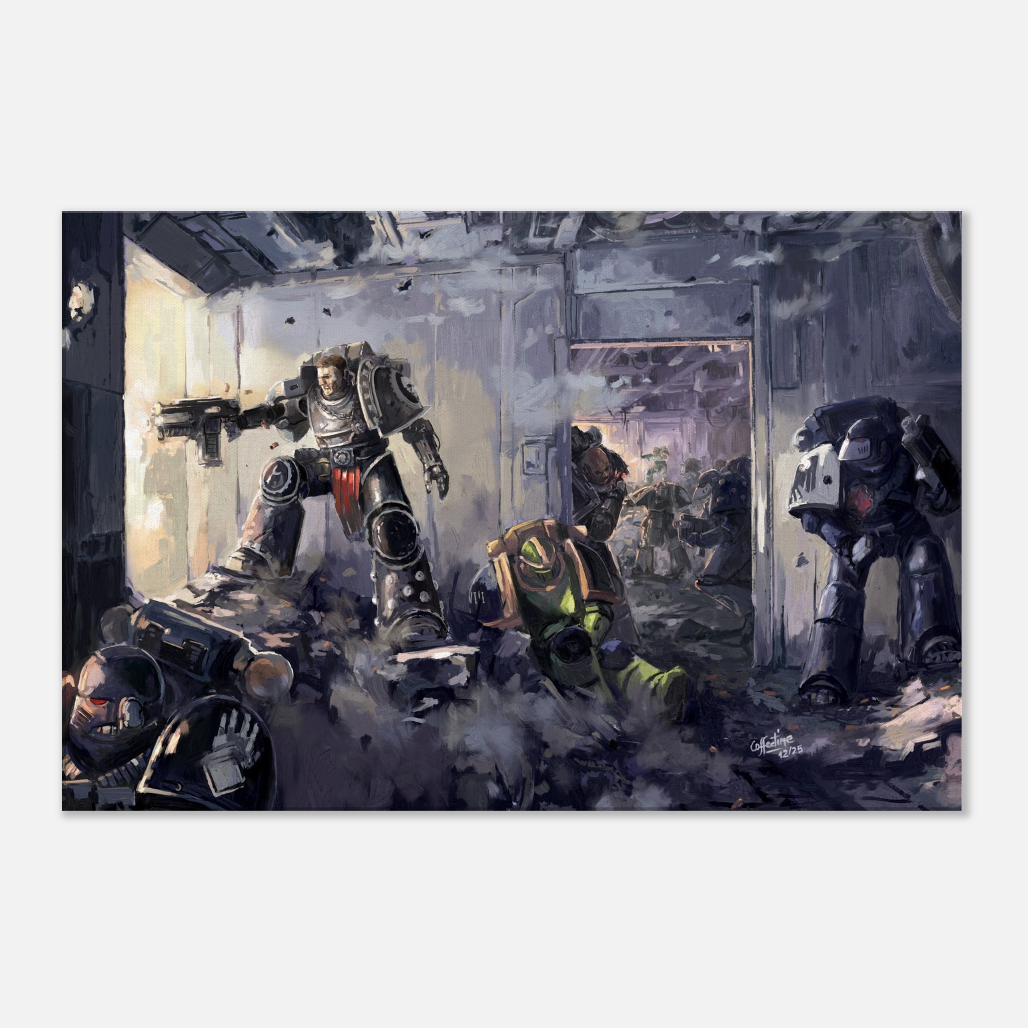 Voici Shadrak Meduson avec sa légion de loyaliste venant de trois chapitres différents. Raven Guard, Salamanders et iron hands se battent ensemble contre Horus et son hérésie !